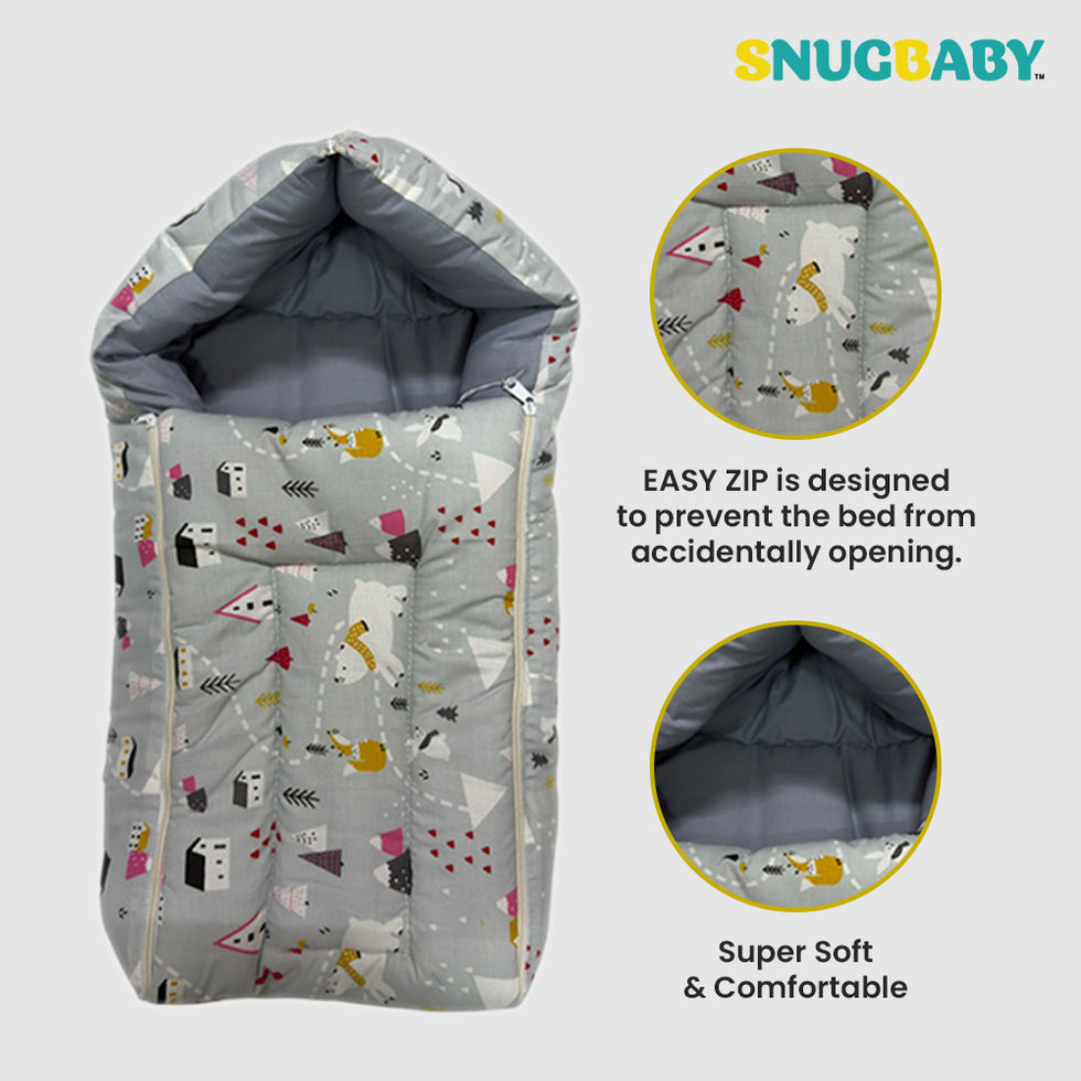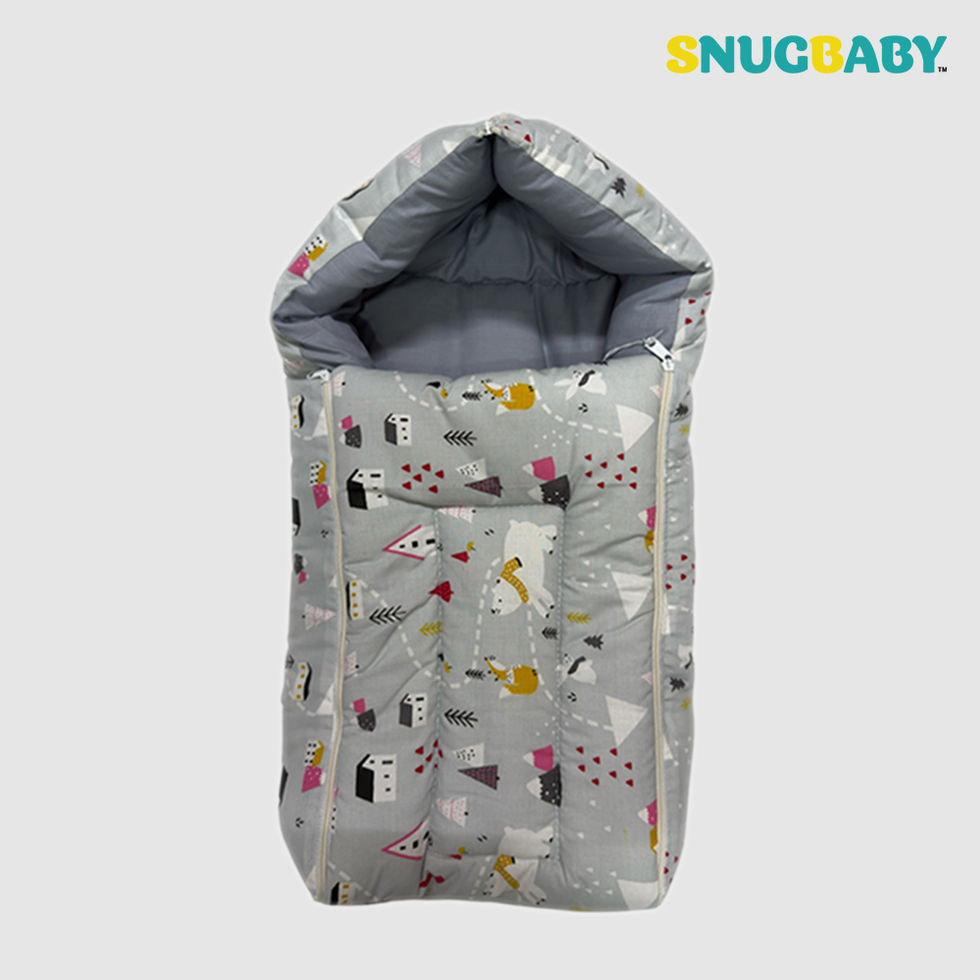 Snugbaby cushioned baby cotton sleeping bag / carry nest is a portable and cozy sleeping space designed specifically for your infants. It provides a secure and comfortable environment for babies to rest or nap, whether at home or on the go.